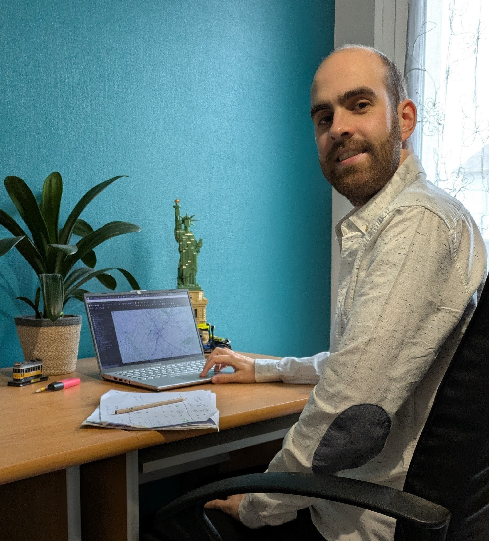 Quand j’avais 10 ans, j’adorais un dessin-animé qui s’appelait « Les Mystérieuses Cités d’or ». Je rêvais de devenir archéologue pour voyager, explorer des endroits, chercher des pierres ou des objets précieux. Finalement, mon métier n’est pas très loin de ce rêve ! Chaque jour, avec les cartes, je découvre des lieux et des sujets différents. C’est un peu comme si je voyageais tout le temps, en restant assis à mon bureau ! Durant mes journées, je ne m’ennuie jamais. J’aide mes collègues en créant des outils qui rendent leur travail plus facile. Puis, je leur montre comment les utiliser. J’aime être utile.